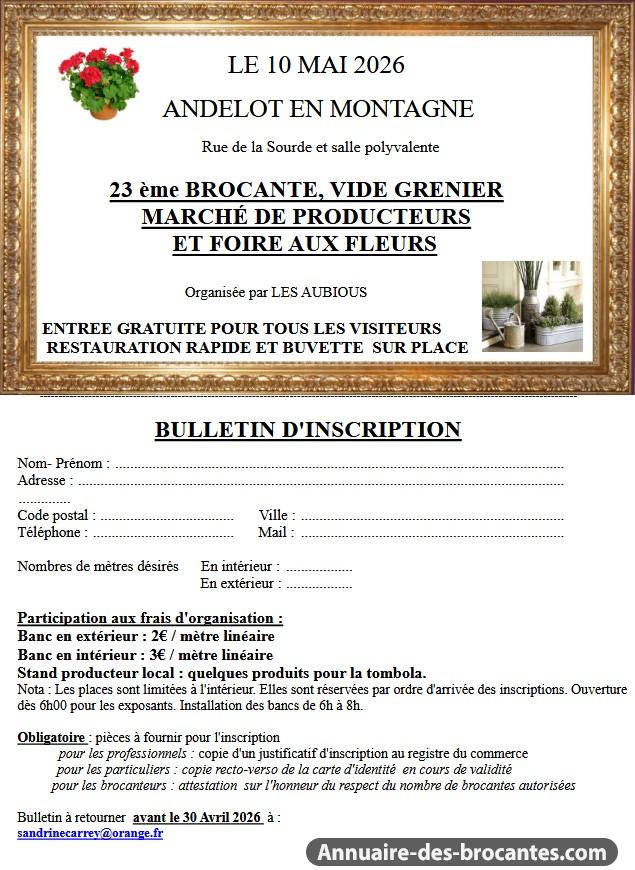 Brocante, vide grenier, marché aux fleurs, producteurs et artisans à Andelot-en-Montagne