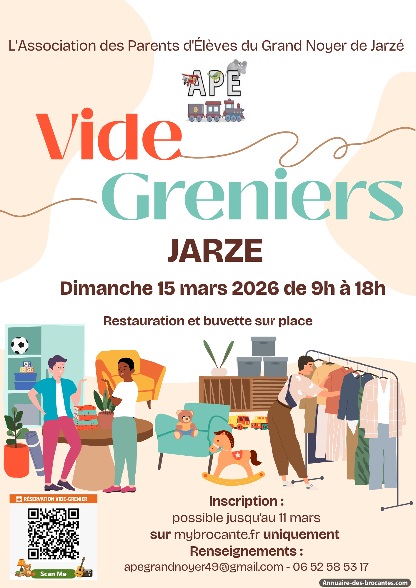 Vide grenier organisé par l'association des parents d'élèves de l'école publique de Jarzé.