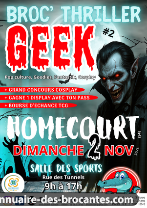 Ne manquez pas l'Evènement BROC' THRILLER GEEK - HOMECOURT 2025 le dimanche 2 NOVEMBRE 2025...